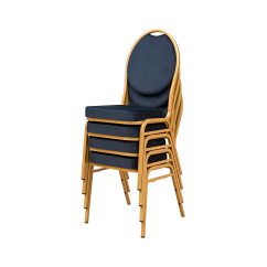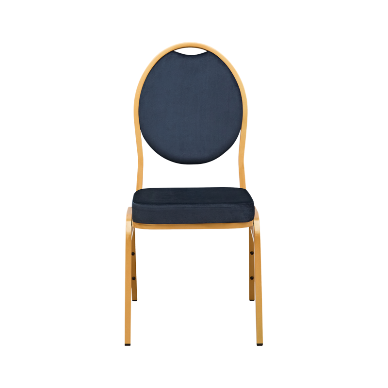 Das Modell HERMAN wurde für repräsentative Bankettsäle geschaffen – dort, wo Eleganz, ein stimmiges Gesamtbild und hoher Komfort gleichermaßen gefragt sind. Die Kombination aus schwarzem Velours und goldenem Stahlgestell verleiht Räumen eine edle, raffinierte Note und harmoniert sowohl mit klassischen als auch modernen Dekorationskonzepten. Ideal für Orte, an denen schnelle Raumwechsel, hochwertige Ausstattung und hoher Sitzkomfort über viele Stunden hinweg unverzichtbar sind – von Galas und Firmenbanketten bis hin zu festlichen Veranstaltungen.