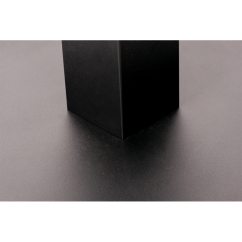 Die Basis des Café-Tisches ALFA S ist pulverbeschichtet und in drei Farben erhältlich: Schwarz, Grau und Weiß. Das Gestell basiert auf einem einzelnen Bein, das für Stabilität sorgt. Die Basis ist mit verstellbaren Kunststofffüßen ausgestattet, sodass die Basis beim Verschieben des Tisches nicht beschädigt wird. Für die Basis empfehlen wir laminierte, furnierte und HPL-Platten.