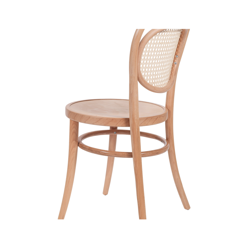 Der Holzstuhl ELLIPSE zeichnet sich durch die subtile, ovale Linienführung der Rückenlehne sowie durch das dekorative Geflecht aus, das dem Modell besondere Leichtigkeit verleiht. Natürliches Buchenholz in Kombination mit der gebogenen Konstruktion bildet eine harmonische Einheit, inspiriert von der klassischen Designtradition. Dieses Modell eignet sich hervorragend für stimmungsvolle Cafés, elegante Restaurants und Boutique-Hotels, in denen es Atmosphäre schafft und anspruchsvolle Raumkonzepte ergänzt.