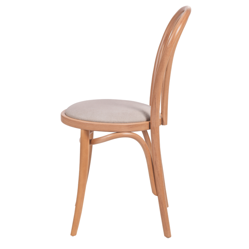 Der Bugholzstuhl MONET 18 mit gepolstertem Sitz ist unsere Empfehlung für Lokale, die zeitlose Ästhetik mit höchstem Komfort verbinden möchten. Dieses Modell eignet sich hervorragend für elegante Restaurants, stimmungsvolle Cafés oder Hotels im klassischen Stil. Seine schlanke Silhouette und die leichte Form machen ihn in Kombination mit der natürlichen Holzfarbe zur idealen Wahl für anspruchsvolle Innenräume.