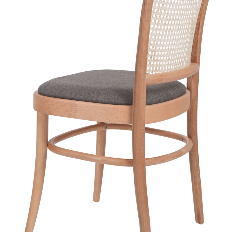 Der Bugholzstuhl LOOMI 811 Rattan mit gepolstertem Sitz ist eine elegante Verbindung aus klassischer Form und erhöhtem Sitzkomfort. Die schlanke Konstruktion aus massivem Buchenholz sowie die luftige Rückenlehne aus natürlichem Rattangeflecht verleihen ihm Leichtigkeit und zeitlosen Charakter. In der natürlichen Holzfarbe fügt sich das Modell harmonisch in die Ästhetik von HoReCa-Innenräumen ein. Dieser Holzstuhl wurde für die intensive Nutzung in Restaurants, Cafés und Hotels entwickelt, wo Design und Langlebigkeit gleichermaßen gefragt sind.