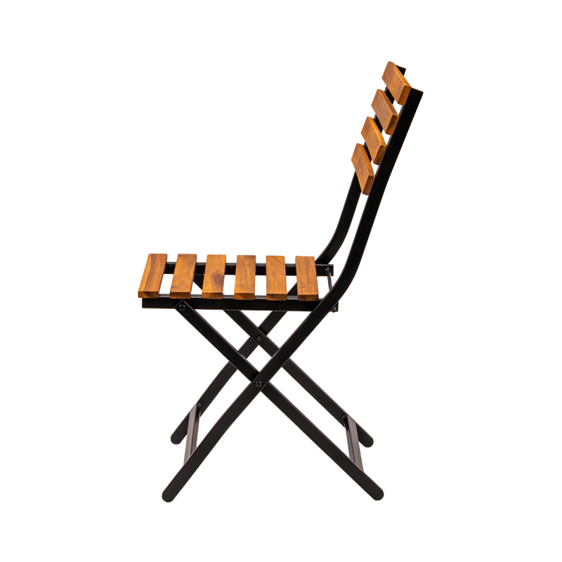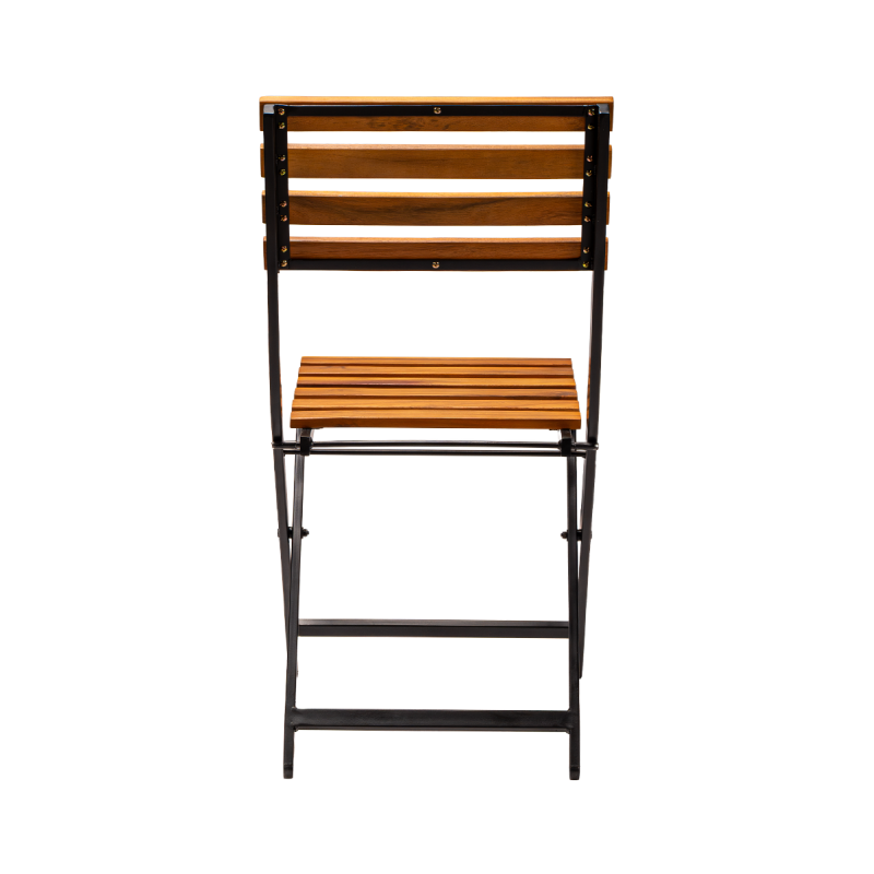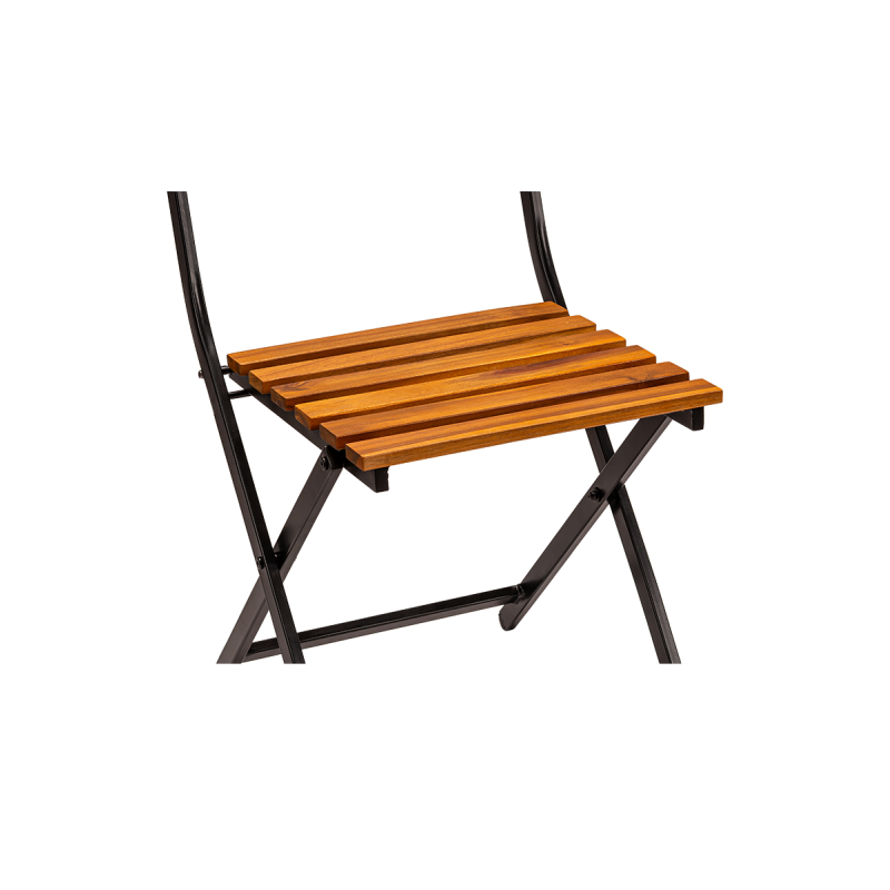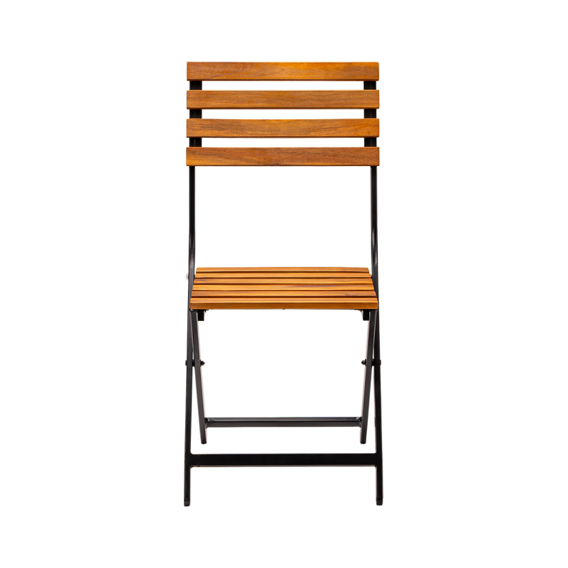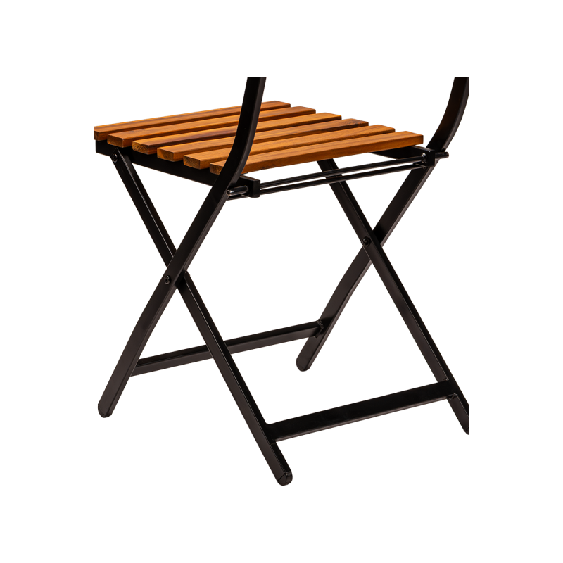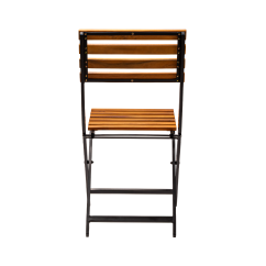 Der pulverbeschichtete Stahlrahmen garantiert Stabilität und Widerstandsfähigkeit gegenüber intensiver Nutzung und Witterungseinflüssen. Sitzfläche und Rückenlehne aus Holzlatten verleihen dem Stuhl einen natürlichen Charakter und bieten angenehmen Sitzkomfort. Der Stuhl ist klappbar, was die Lagerung, den Transport und die schnelle Vorbereitung des Gästebereichs erleichtert.