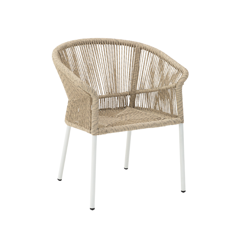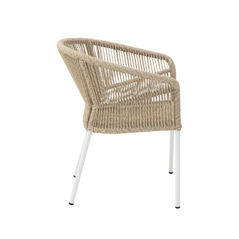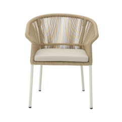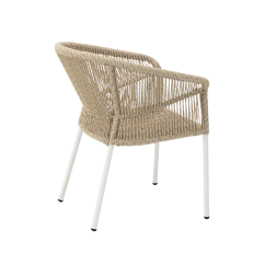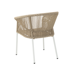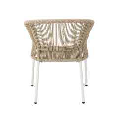 Er ist perfekt für diejenigen, die Wert auf Stil, Langlebigkeit und Komfort legen. Das abgerundete Rückenteil und die ergonomisch geformten Armlehnen sorgen für hohen Sitzkomfort, während die Aluminiumstruktur für Langlebigkeit sorgt. Das helle Finish verleiht dem Stuhl einen vielseitigen Charakter.
