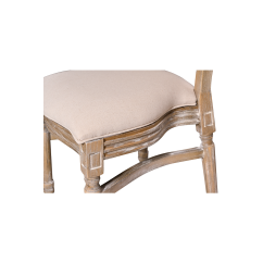 Die sanft abgerundete Rückenlehne in der charakteristischen Medaillonform, die geschnitzten Beine und die feinen Verzierungen des Rahmens betonen den eleganten Charakter des Stuhls. Jedes Detail wurde mit größter Sorgfalt und Liebe zur Ästhetik ausgearbeitet – dadurch ist der Stuhl nicht nur ein Blickfang, sondern auch ein dekoratives Element an sich – ideal als stilvolle Kulisse für Hochzeitsfotos und exklusive Raumgestaltungen.
