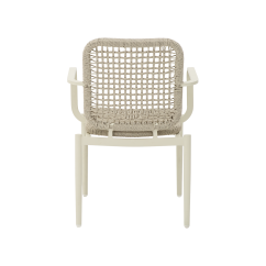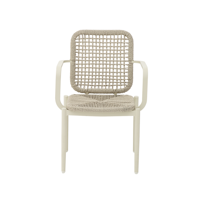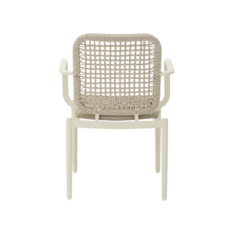 Sitz und Rückenlehne des Modells DIEGO bestehen aus langlebigen Technorattanfasern im Vortex-Geflecht, die auch bei unterschiedlichen Witterungsbedingungen formstabil bleiben. Das Material ist UV-beständig und behält auch bei dauerhafter Außennutzung seine Eigenschaften. Diese Lösung wurde speziell für Bereiche wie Biergärten oder Restaurantterrassen entwickelt, wo Langlebigkeit, kurze Trocknungszeiten und Zuverlässigkeit im täglichen Einsatz entscheidend sind.