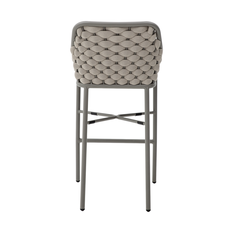 Sitz und Rückenlehne des Stuhls MASSIMO BAR bestehen aus einem Geflecht, das zusätzlich innen verstärkt ist.  Dadurch behält die Konstruktion auch bei intensiver Nutzung in gastronomischen Bereichen ihre Form. Die Konstruktion bietet stabile Unterstützung und hohen Sitzkomfort in erhöhter Position.