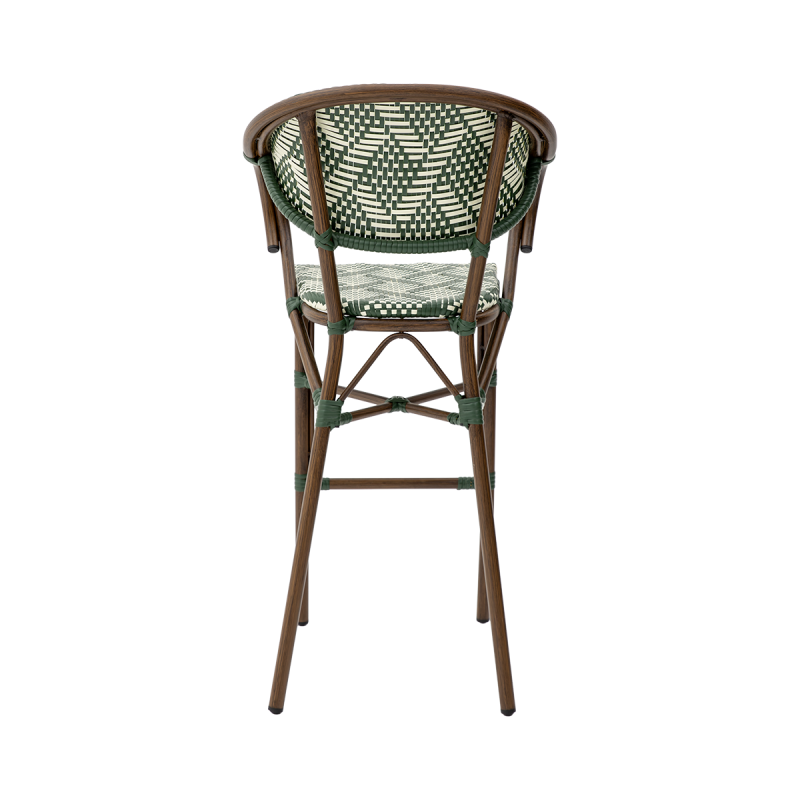 Das Modell CAMILLO BAR überzeugt durch sein markantes, dekoratives Geflecht und seine leichte, erhöhte Bauweise, die ideal für den Einsatz an Bartischen und Hochtischen geeignet ist. Die abgerundeten Armlehnen sorgen für zusätzlichen Komfort und verleihen dem Gesamtbild eine stimmige, durchdachte Optik. Dieser Stuhl eignet sich hervorragend für stark frequentierte Bereiche, in denen sowohl Ästhetik als auch Funktionalität zählen.