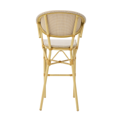 In dieser Variante des CAMILLO BAR wurden Sitz und Rückenlehne aus Technorattan- Geflecht gefertigt, das fest in die Konstruktion integriert ist und eine gleichmäßige, stabile Oberfläche bildet. Diese Ausführung bietet eine komfortable Unterstützung und angenehme Flexibilität, die besonders bei längerer Nutzung wichtig ist. Das feine, dichte Geflecht verleiht dem Stuhl einen eleganten Charakter und ist gleichzeitig für den intensiven Einsatz im Gastronomiebereich ausgelegt. Zusätzlich überzeugt das Material durch seine UV-Beständigkeit.
